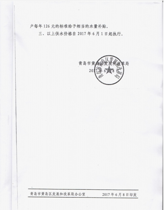 青島市黃島區(qū)發(fā)展和改革局關(guān)于青島董家口經(jīng)濟(jì)區(qū)供水有限公司供水價(jià)格的批復(fù)