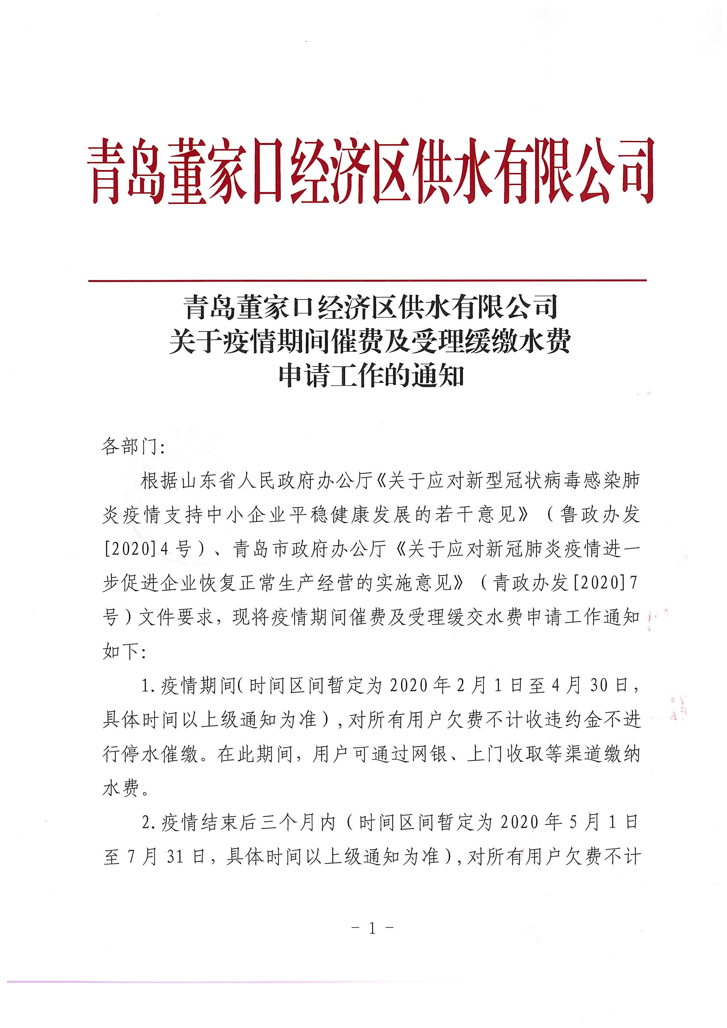 關(guān)于疫情期間催費(fèi)及受理緩繳水費(fèi)申請(qǐng)工作的通知