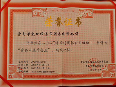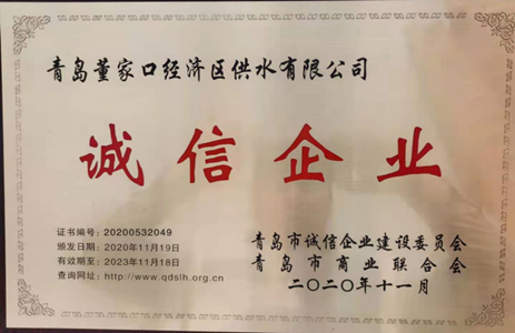 corporate culture喜報!供水公司榮獲2020年度“青島市誠信企業(yè)”